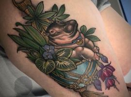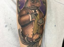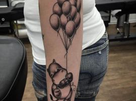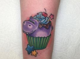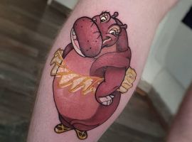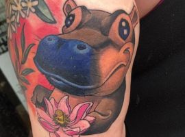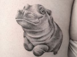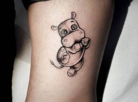 Свого часу мега популярними були кіндер-сюрпризи з маленькими іграшками у вигляді синіх гіпопотамів. Ці персонажі були дуже милими і позитивними. А тому, якщо на шкірі зобразити тату у вигляді такої іграшки, то символізувати вона буде дитинство і позитивне, безпосереднє ставлення до життя. Таку ідею вибере людина добра, життєрадісна і відкрита. Таке ж значення матиме татуювання у вигляді персонажа відомого мультфільму “Мадагаскар”.