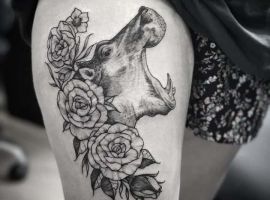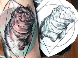 Символізм цих двох образів дуже схожий. При цьому, гіпопотам уособлює грубу енергію і тваринну силу. Гіпопотама частіше вибирають чоловіки, щоб підкреслити свою силу і тваринну внутрішню міць. Саме тому, гіпопотама зазвичай зображують у великому обсязі на таких частинах тіла, як: спина, груди, плече. І частіше саме в реалістичному стилі. Ідеальний ескіз можна замовити у салоні Альянс у Києві.