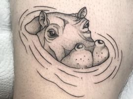 Бегемот – тварина не особливо естетична і складно уявити, що вона уособлює як символ. Однак, у багатьох культурах світу з давніх-давен до бегемота було особливе ставлення. Наприклад, в Стародавньому Єгипті, де різним богам часто приписували вид тварин і птахів, у вигляді гіпопотаму представляли богиню материнства. Відомо, що самки цієї тварини дуже хороші матері і завжди захищають своїх дитинчат до останнього. Так і в якості татуювання, образ бегемота підійде жінці, яка є люблячою матір’ю і вважає дітей – головним у своєму житті.