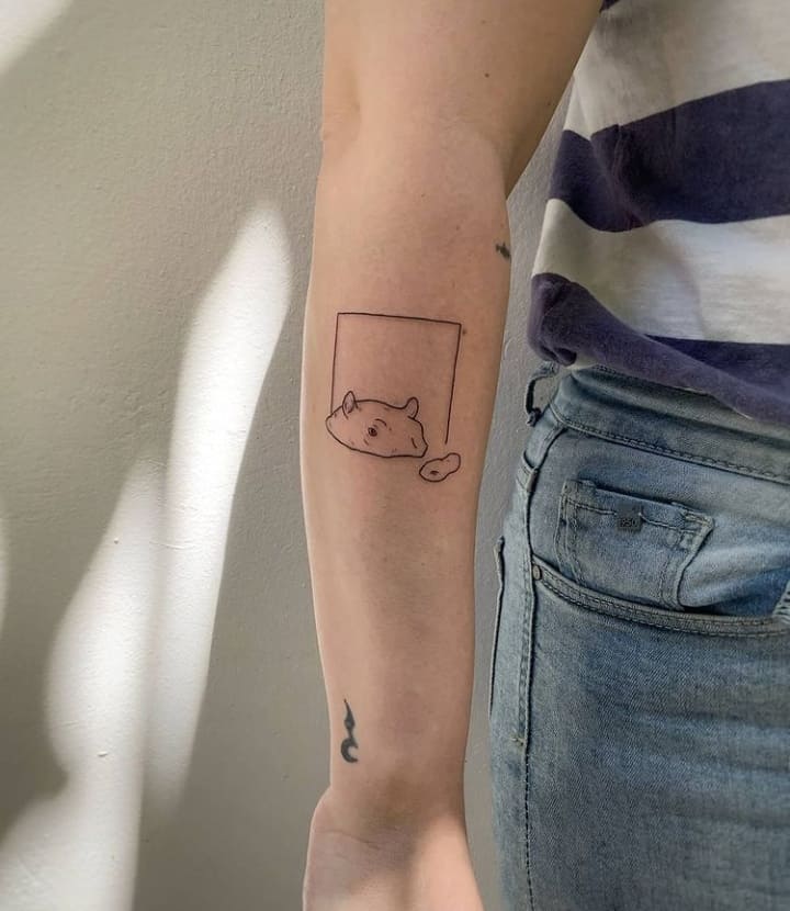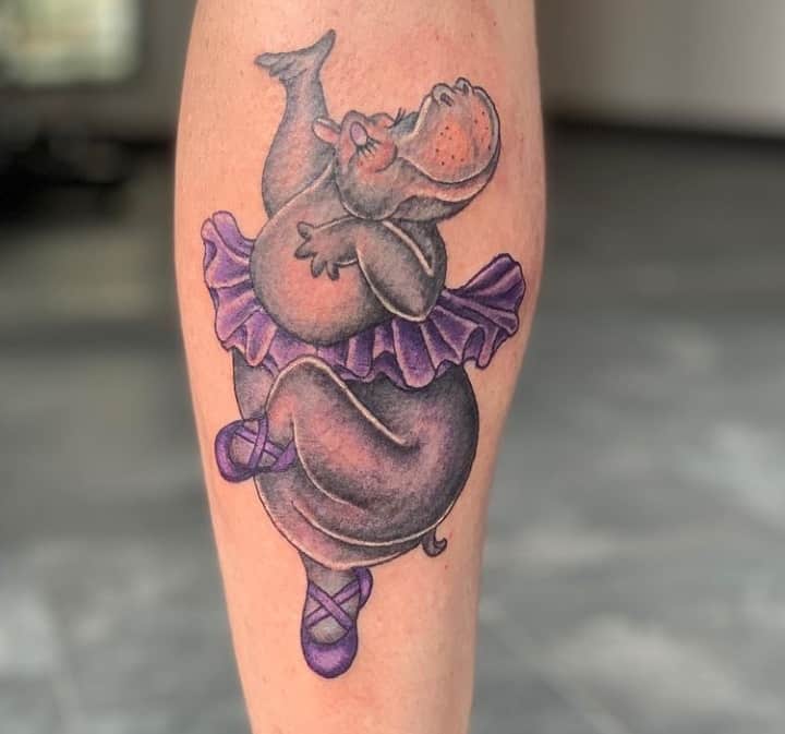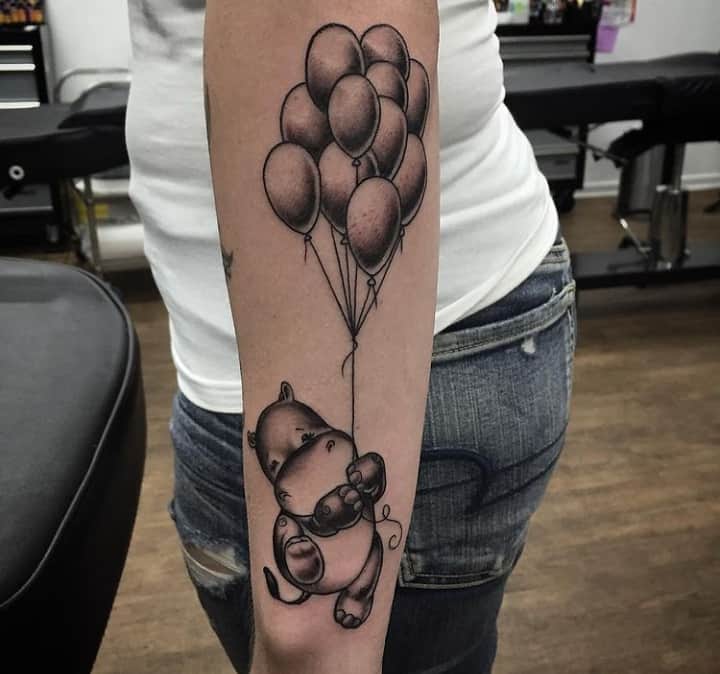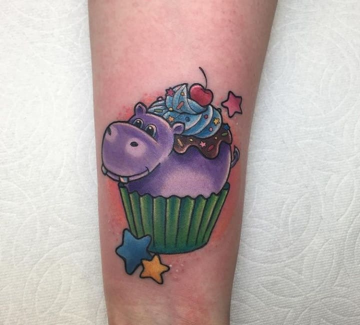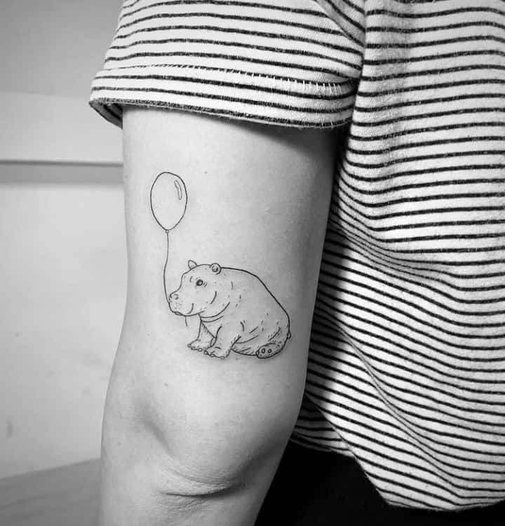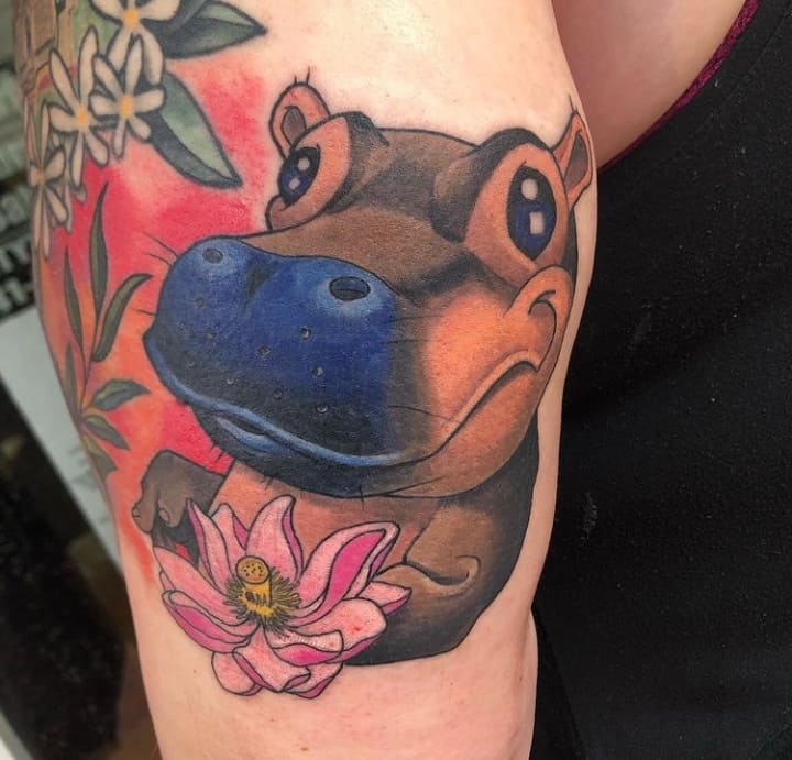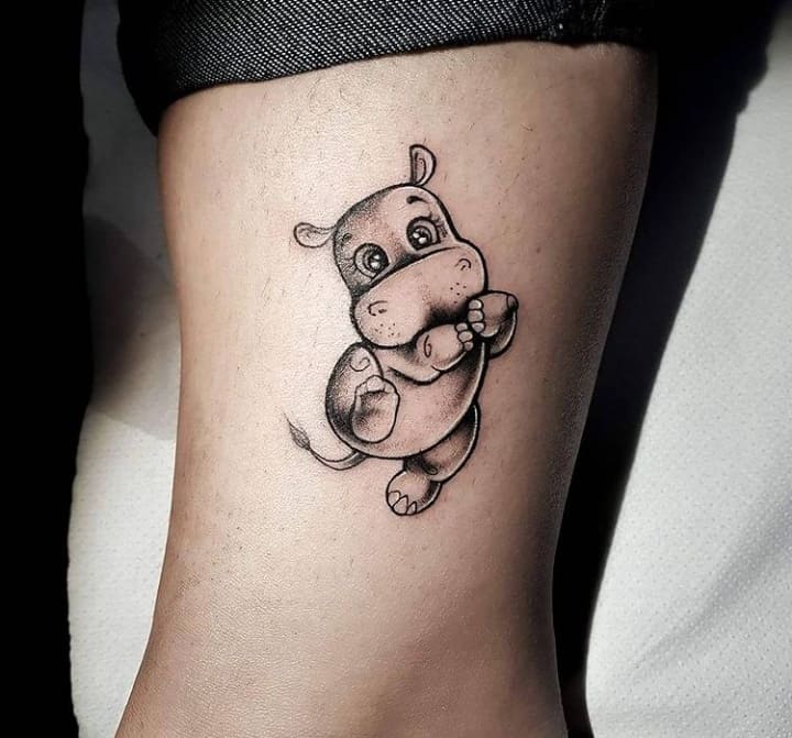 Свого часу мега популярними були кіндер-сюрпризи з маленькими іграшками у вигляді синіх гіпопотамів. Ці персонажі були дуже милими і позитивними. А тому, якщо на шкірі зобразити тату у вигляді такої іграшки, то символізувати вона буде дитинство і позитивне, безпосереднє ставлення до життя. Таку ідею вибере людина добра, життєрадісна і відкрита. Таке ж значення матиме татуювання у вигляді персонажа відомого мультфільму “Мадагаскар”.