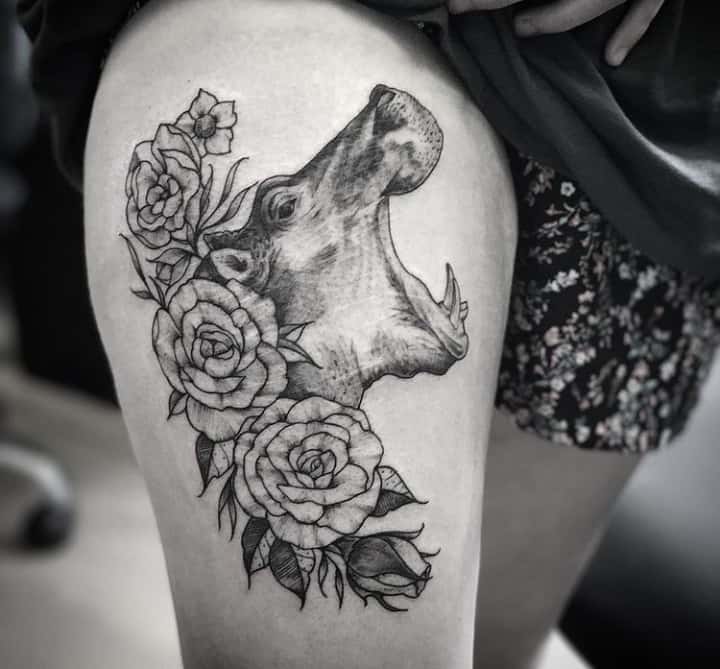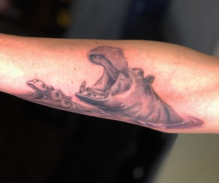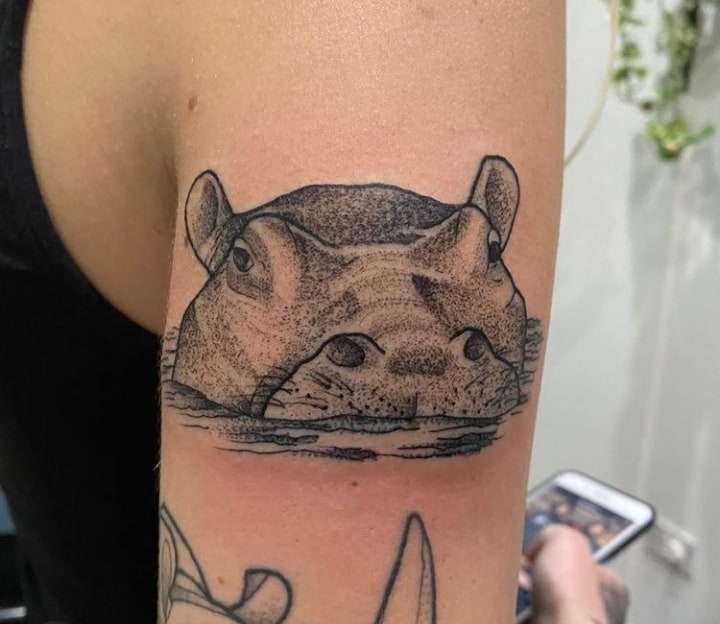 Символізм цих двох образів дуже схожий. При цьому, гіпопотам уособлює грубу енергію і тваринну силу. Гіпопотама частіше вибирають чоловіки, щоб підкреслити свою силу і тваринну внутрішню міць. Саме тому, гіпопотама зазвичай зображують у великому обсязі на таких частинах тіла, як: спина, груди, плече. І частіше саме в реалістичному стилі. Ідеальний ескіз можна замовити у салоні Альянс у Києві.