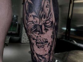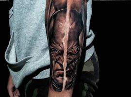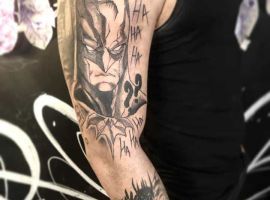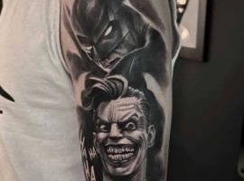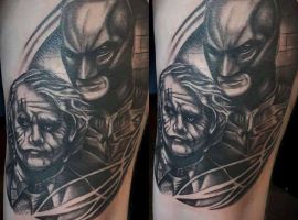 - Джокером – це заклятий ворог Бетмена. Особливістю даного персонажа є унікальна здатність битися за допомогою предметів, які стилізовані під реквізит клоуна і ілюзіоніста. Тату з Джокером відображає мінливість його власника. Зараз він може бути добрим, а через хвилину його настрій круто зміниться.