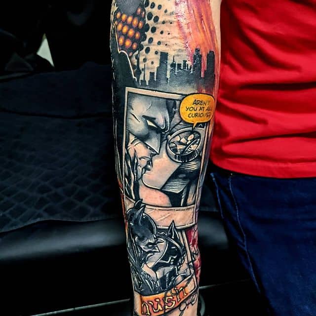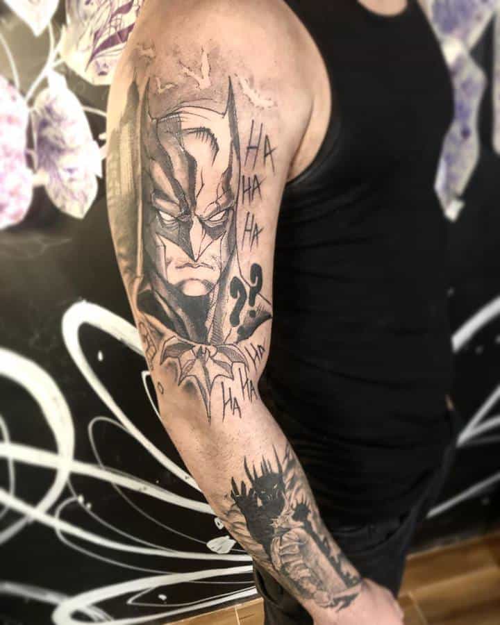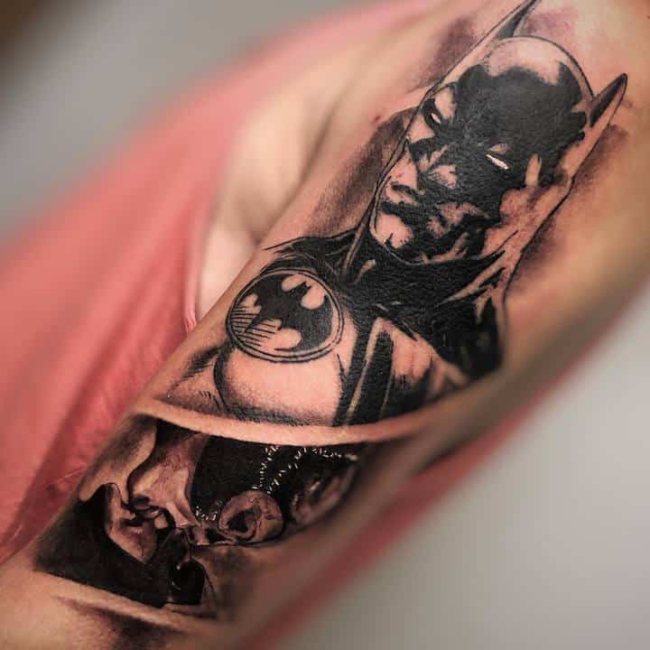 Бетмен є одним з найпопулярніших героїв коміксів. Саме його образ найчастіше використовується в якості татуювання. У даного персонажа немає надздібностей, проте він володіє унікальними бойовими мистецтвами, силою і витримкою. Саме такими якостями тату Бетмен наділяє свого володаря.