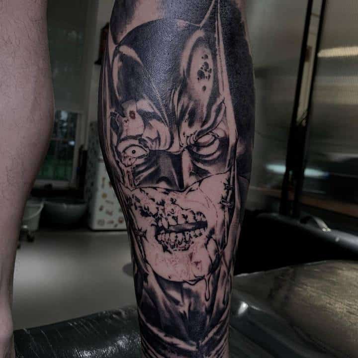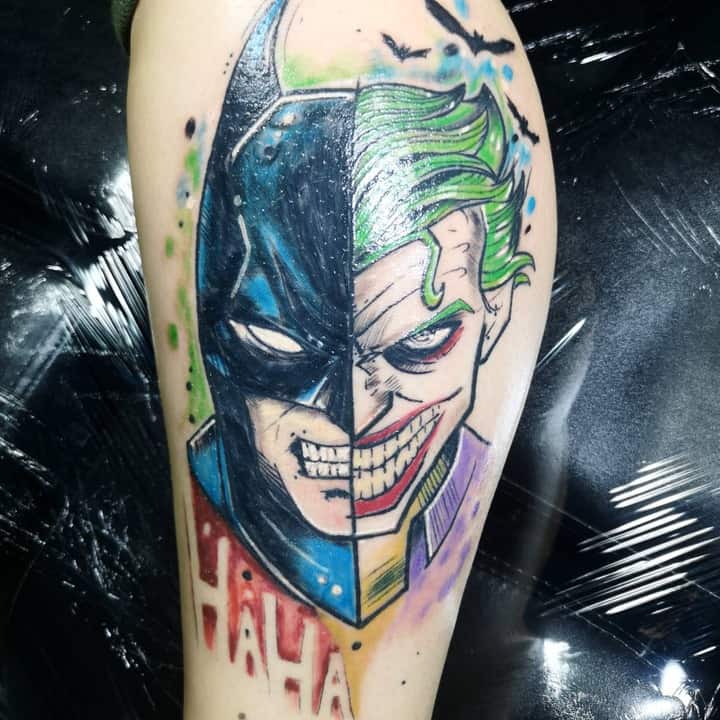 - Джокером – це заклятий ворог Бетмена. Особливістю даного персонажа є унікальна здатність битися за допомогою предметів, які стилізовані під реквізит клоуна і ілюзіоніста. Тату з Джокером відображає мінливість його власника. Зараз він може бути добрим, а через хвилину його настрій круто зміниться.