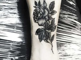 Для зображення на нозі чорно білих тату ескізи краще підбирати в абстрактній техніці. Зображення там набивають, щоб підкреслити стрункість, приховати повноту, шрами.