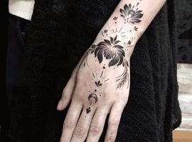 Улюблене місце чоловіків для татуювання – руки. Для тату рукава чорно білі варіанти є класикою. Для плечей підійдуть об’ємні зображення, на пальцях добре виглядають букви, цифри, свічки. Кисті оптимальні для маленьких малюнків, написів. В тату рукава у дівчат частіше присутній колір, вони на руку частіше набивають квіти, зірки, тварин, амулети, витіюваті візерунки.