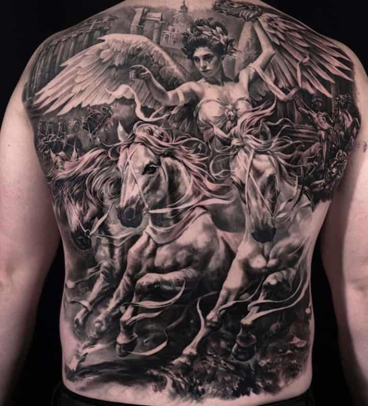 Для чорно білих ескізів тату чоловіки люблять використовувати символізм. У цій техніці зображуються Геральдичні тварини, символіка древніх слов’ян і кельтів, готика.