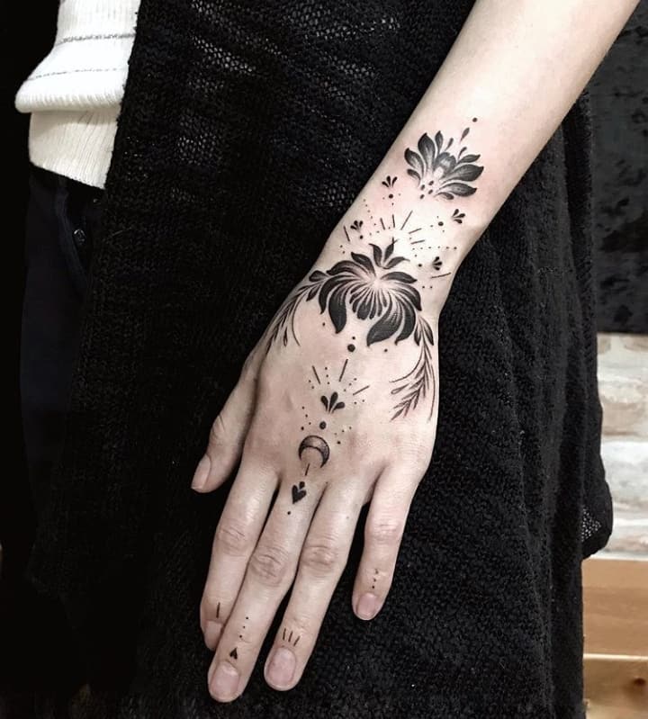 Улюблене місце чоловіків для татуювання – руки. Для тату рукава чорно білі варіанти є класикою. Для плечей підійдуть об’ємні зображення, на пальцях добре виглядають букви, цифри, свічки. Кисті оптимальні для маленьких малюнків, написів. В тату рукава у дівчат частіше присутній колір, вони на руку частіше набивають квіти, зірки, тварин, амулети, витіюваті візерунки.