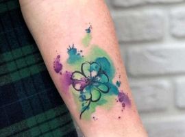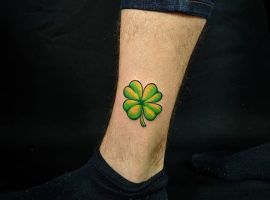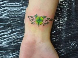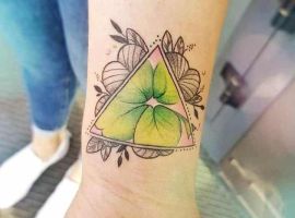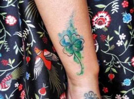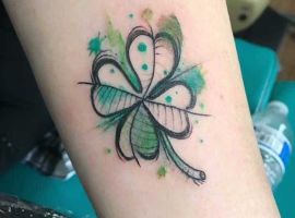 - Тату з конюшиною. Такий варіант здавна вважався щасливим. Конюшина приносить матеріальне благополуччя і достаток в будинок, допомагає домогтися поставлених цілей. Конюшина з чотирма листочками користується особливою популярністю, дозволяє домогтися взаємної любові.