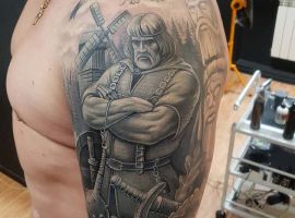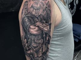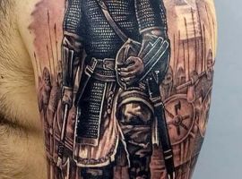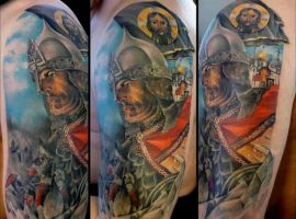 Пророблений образ билинного героя в повному бойовому вбранні не залишить байдужим нікого, хто побачив ваше татуювання. Досвідчений майстер тату-салону Альянс в Києві намалює для Вас абсолютно унікальний ескіз, який проявить Вашу індивідуальність.