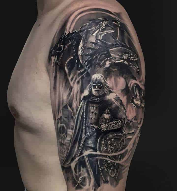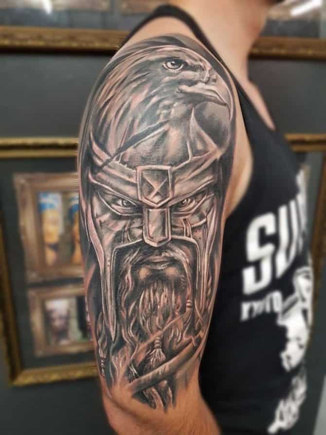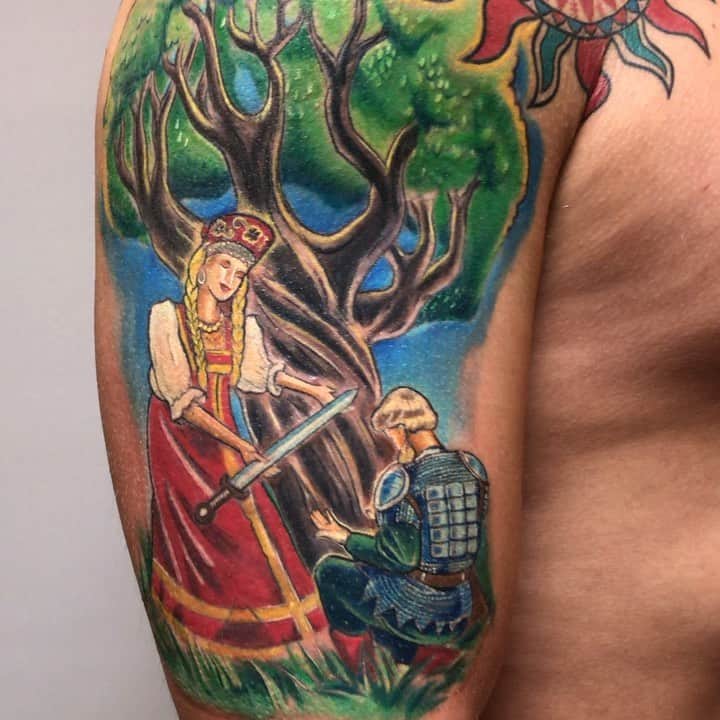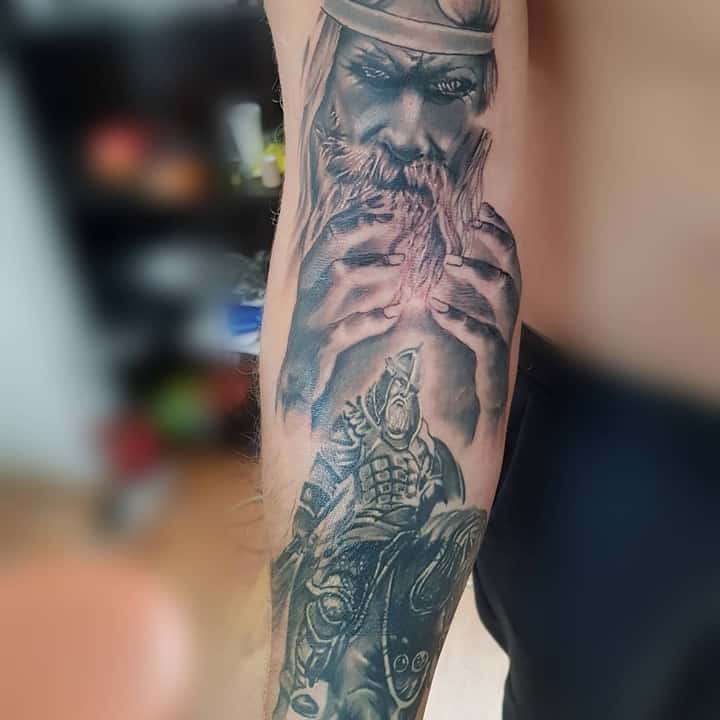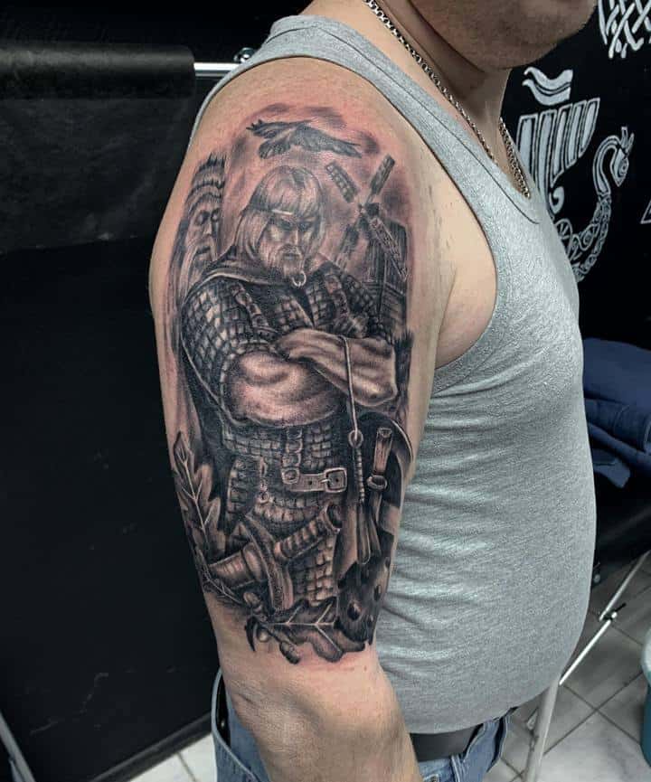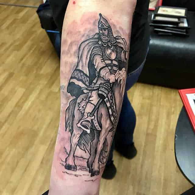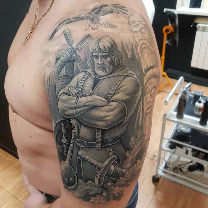 Пророблений образ билинного героя в повному бойовому вбранні не залишить байдужим нікого, хто побачив ваше татуювання. Досвідчений майстер тату-салону Альянс в Києві намалює для Вас абсолютно унікальний ескіз, який проявить Вашу індивідуальність.