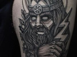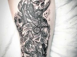 Скандинавські боги – тату для сильних, рішучих, впевнених особистостей. Образи богів Одіна і Тора підходять для лідера, ризикового, стійкого, цілеспрямованого і мудрого чоловіка. Валькірія означає хоробрість, готовність відстоювати свої інтереси, чесно вести бій.
