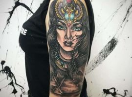 Тату богиня Ісіда символізує материнську і подружню любов, милосердя. Символами є трон і амулет, вони фігурують в ескізах.