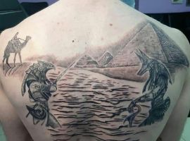 Серед тату богів виділяється і Анубіс – чоловік з головою шакала.