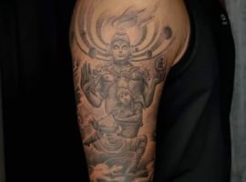 Шива – індуїстський бог очищення і звільнення, що руйнує світ і створює його заново. Це символ здоров’я, благополуччя. Тату рекомендується тим, хто вміє мислити гнучко, відрізняється проникливістю і об’єктивністю, не має прив’язаностей.