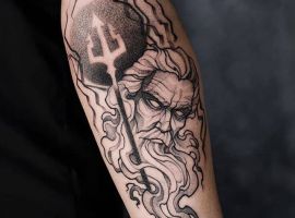 Посейдон. Це Чоловічий архетип батька. Він владика морів і один з найпопулярніших богів у стародавніх греків. Тату бог Посейдон означає, що його носій владний і сильний.