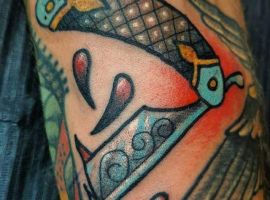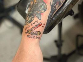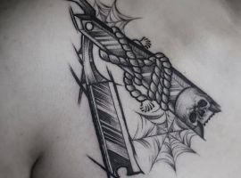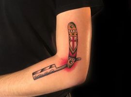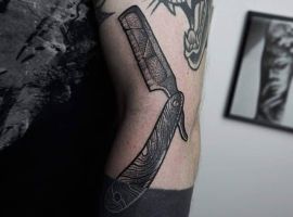Власники подібного тату хочуть поваги до себе. Своїм кривдникам вони швидко дають відсіч. По їх особі видно, що краще не вступати з ними в суперечку. Для чоловіків кращі більші зображення бритви, нанесені монотонними відтінками. Найчастіше їх наносять на область рук, шиї, спини, плечей. Персональні ескізи роблять майстри нашого салону Альянс у Києві.
