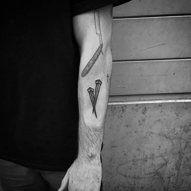 Власники подібного тату хочуть поваги до себе. Своїм кривдникам вони швидко дають відсіч. По їх особі видно, що краще не вступати з ними в суперечку. Для чоловіків кращі більші зображення бритви, нанесені монотонними відтінками. Найчастіше їх наносять на область рук, шиї, спини, плечей. Персональні ескізи роблять майстри нашого салону Альянс у Києві.