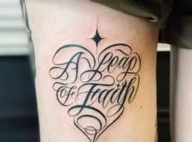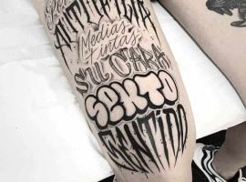 Найпопулярніша техніка останнім часом – леттерінг. Це стилізація, де кожна лінія як би унікально намальована, а не надрукована стандартним шрифтом. Леттерінг бере початок зі стилю чикано, де красиві написи З завитками були частиною композиції. Майстри вирішили, що можна і з одного напису зробити Художній твір. Техніка дозволяє створити абсолютно унікальний напис на шкірі.