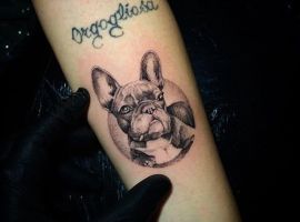А ось французький бульдог має більш милий символізм, адже ця порода завжди викликає розчулення. Такий малюнок нанесе на шкіру людина життєрадісна і добродушна, оптимістична і доброзичлива.