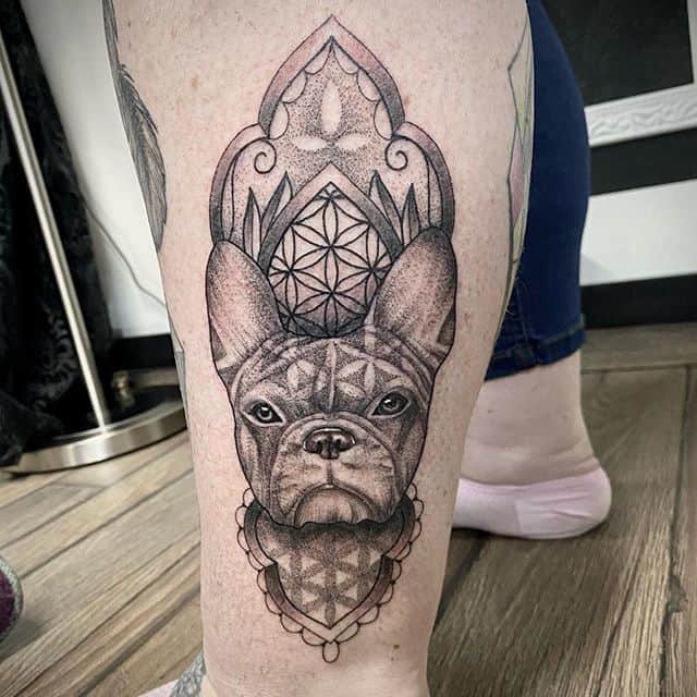 А ось французький бульдог має більш милий символізм, адже ця порода завжди викликає розчулення. Такий малюнок нанесе на шкіру людина життєрадісна і добродушна, оптимістична і доброзичлива.
