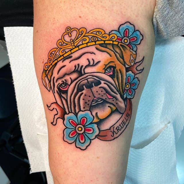 Значення татуювання бульдог – це стриманість, благородство, інтелект і важність.
