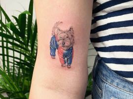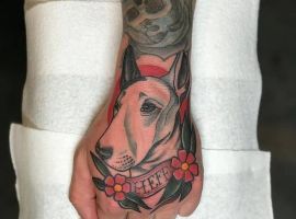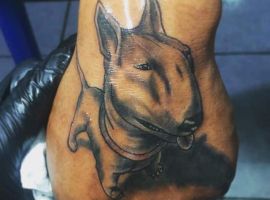 Татуювання з тваринами є одними з найбільш популярних бажань клієнтів тату-салону Альянс. Безліч людей звертаються з проханням зробити ескіз, а потім і саму татуювання на тілі, з собакою, і зокрема, з бультер’єром. Це сильні, активні, сміливі і шалено віддані тварини, які готові буквально віддати життя за свого господаря. Вибирають татуювання бультер’єр люди, що володіють ідентичними рисами характеру.