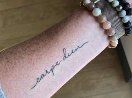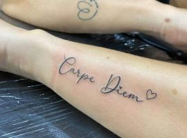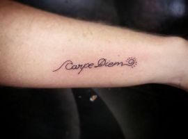 Написи сьогодні – один з найпоширеніших варіантів прикраси тіла, і особливою популярністю користуються фрази тату на латині – лаконічні, але які несуть глибокий філософський зміст. Один з таких написів carpe diem татуювання. Він має позитивне значення, красиво виглядає в будь-якому розмірі і на будь-якій частині тіла, чудово виглядає сам по собі і в поєднанні з додатковими зображеннями, тому незмінно залишається одним з найбільш затребуваних в тату-салонах.