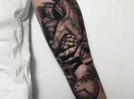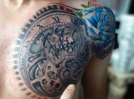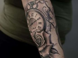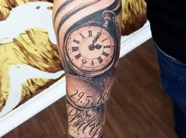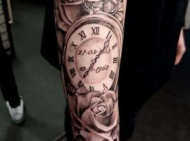 Годинники щодня рахують хвилини життя людини, в результаті чого, вони знайшли популярність і в тату індустрії. Татуювання годинник підходить для представників обох статей, неважливо реалістичний він, або абстрактний, в якому стилі виконані ескізи – це не впливає на філософський підтекст і значення.