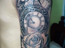 - Часто зустрічається комбінація тату з годинником і компасом, в силу схожості значення цих елементів. Такий образ стає для власника оберегом, що допомагає знайти правильний шлях.