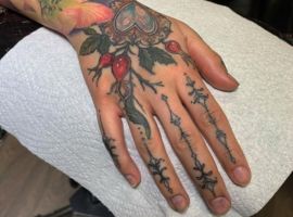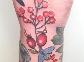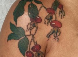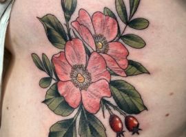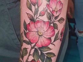 Значення тату шипшини для дівчини. У народі шипшину називають дикою трояндою. Дівчата, що володіють подібним татуюванням, підкреслюють свою ніжність і внутрішню красу в поєднанні з сильним характером і готовність до складнощів життя. Найчастіше саме дівчата прикрашають своє тіло невинно-рожевими квітами разом з ягодами.