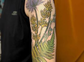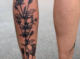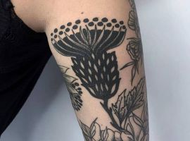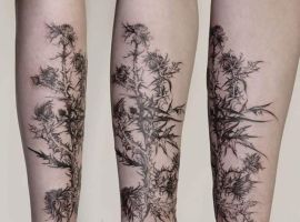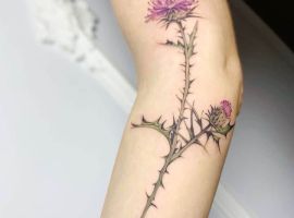 Подивіться галерею з фотоприкладами ТАТУ чортополох і шипшина
