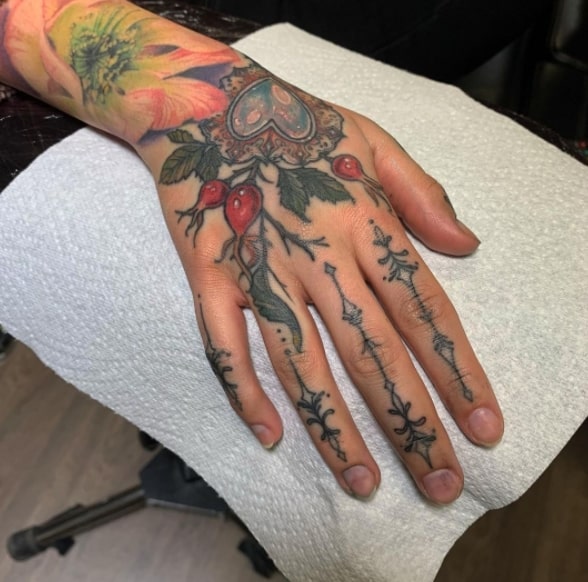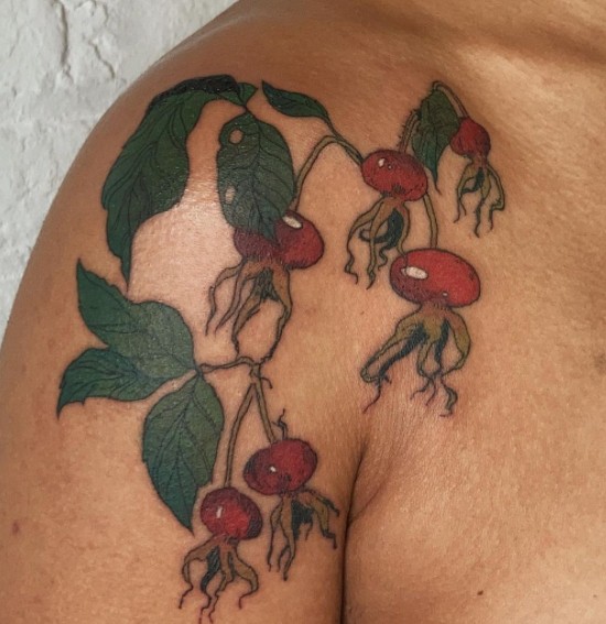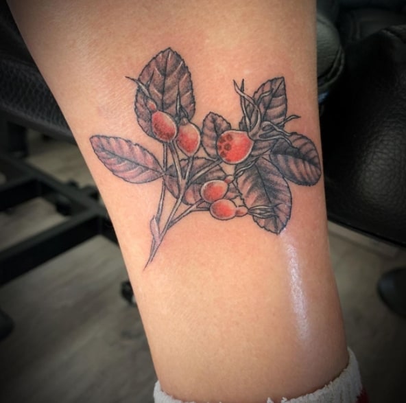Значення тату шипшини для дівчини. У народі шипшину називають дикою трояндою. Дівчата, що володіють подібним татуюванням, підкреслюють свою ніжність і внутрішню красу в поєднанні з сильним характером і готовність до складнощів життя. Найчастіше саме дівчата прикрашають своє тіло невинно-рожевими квітами разом з ягодами.