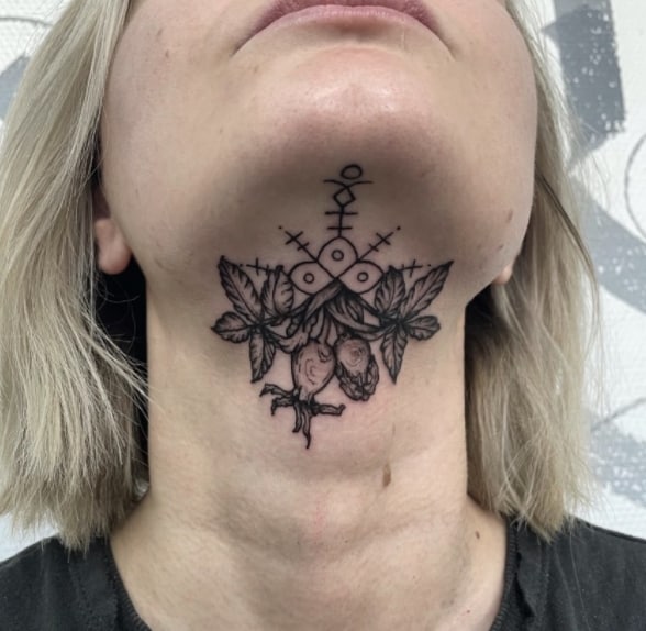 Рожеві квітки символізували ніжність і любов, а шипи навколо бутона – важкий характер і здатність захистити себе. Якщо рожева квітка знаходиться в дуеті з ягодами з самого чагарнику, то подібне татуювання позначає міцне здоров’я, багатство, а також зв’язок з потойбічним світом. З давніх пір вважалося, що чагарник виростає на межі людського і потойбічного світу. Тому особливим цінителям містики повинна сподобатися ідея нанесення гілки чагарнику на власне тіло.