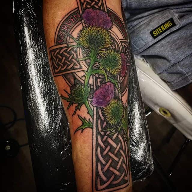 Основна мета нанесення подібного ескізу не тільки краса, але і міркування безпеки. У звичній християнській вірі чортополох означає печаль і смуток, хоча в Шотландії рослина є символом країни.