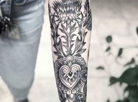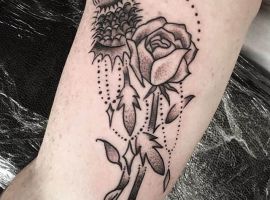 Подивіться галерею з фотоприкладами ТАТУ чортополох і шипшина