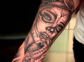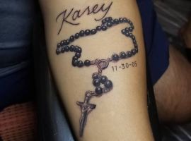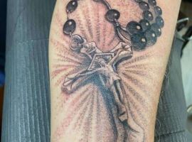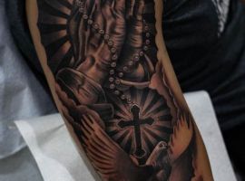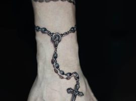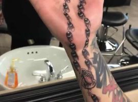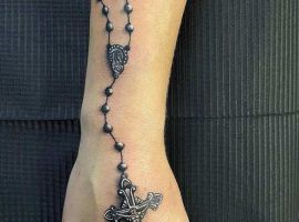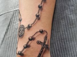 Перше, що можна сказати про людину з таким тату, це те, що вона цікавиться духовністю і прагне постійно ставати кращою. Також чотки на шкірі символ мудрості і самопізнання.