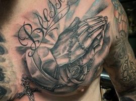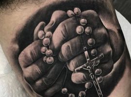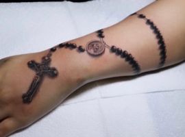 Якщо татуювання з чотками наносить християнин, то звичайно, крім намистин, на них обов’язково буде хрестик. Також до даного символу іноді додають малюнок рук, складених в молитві.
