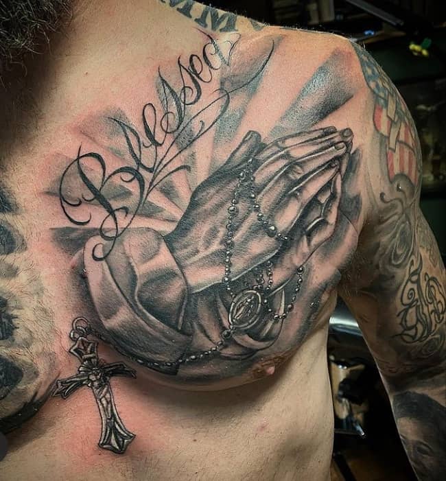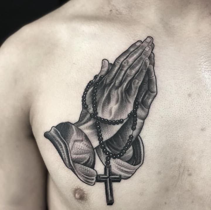 Якщо татуювання з чотками наносить християнин, то звичайно, крім намистин, на них обов’язково буде хрестик. Також до даного символу іноді додають малюнок рук, складених в молитві.