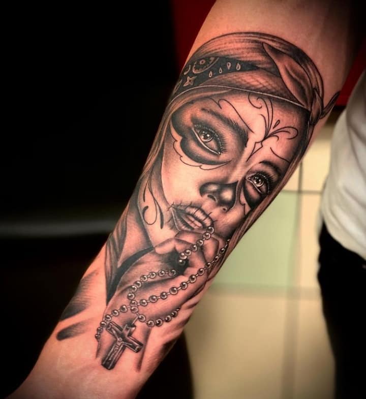 Перше, що можна сказати про людину з таким тату, це те, що вона цікавиться духовністю і прагне постійно ставати кращою. Також чотки на шкірі символ мудрості і самопізнання.