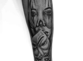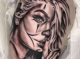- Дівчина в масці. Таке тату знову відсилає до стародавніх Мексиканських повір’їв. Маски в стилі чикано – це жіночне зображення черепа. Воно символізує віру в фортуну. Тату маски чикано – для зухвалих і харизматичних дівчат.