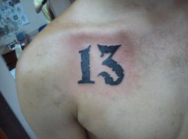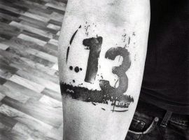 Тату з числом 13 може мати різноманітні тлумачення, залежно від того, з якими додатковими елементами воно нанесено. Даний символ породив безліч забобонів, нажив собі погану репутацію, проте тату з ним часто набивають, щоб показати зневагу до прикмет, заявити, що доля людини залежить виключно від неї самої.