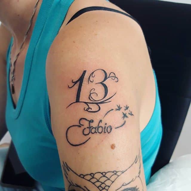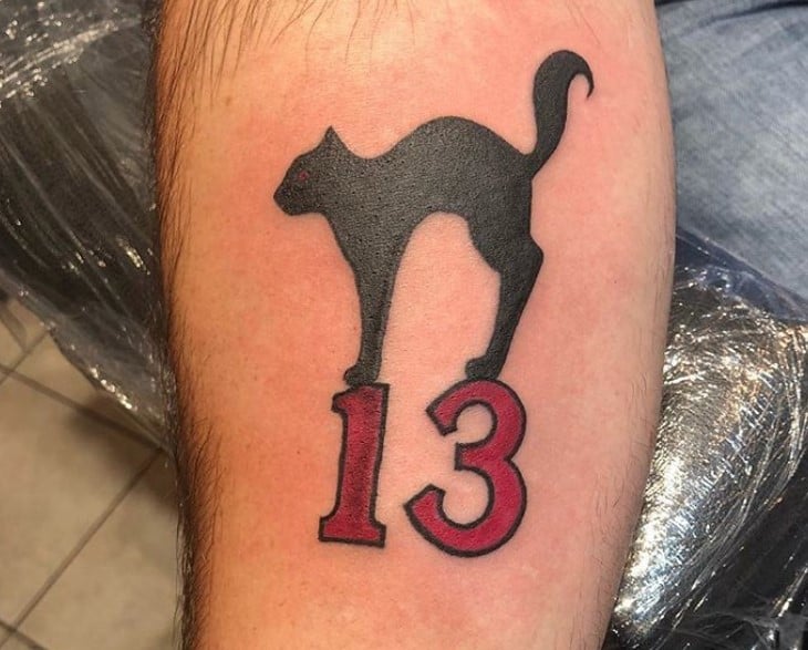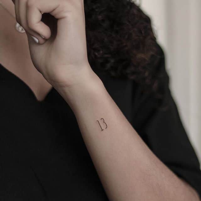 Тату з числом 13 може мати різноманітні тлумачення, залежно від того, з якими додатковими елементами воно нанесено. Даний символ породив безліч забобонів, нажив собі погану репутацію, проте тату з ним часто набивають, щоб показати зневагу до прикмет, заявити, що доля людини залежить виключно від неї самої.