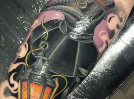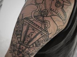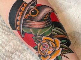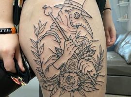 Разом з чумним доктором рідко можна зустріти якісь додаткові образи. Однак, можна додати ворона, ручний ліхтар, черепа і скелети, і навіть, відповідні за стилем квіти. Наприклад, троянди будуть виглядати досить гармонійно, якщо у них будуть великі гострі шипи. Замовте персональний ескіз у майстра салону Альянс у Києві.