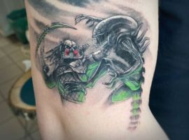 Ескізів тату Хижака і Чужого створено багато, проблем з вибором не буде. Головне – знайти хорошого майстра з великим досвідом у створенні реалістичних татуювань. Адже набити правильні і деталізовані образи космічних монстрів – завдання непросте, що вимагає навичок і скрупульозності. Майстри нашого салону Альянс в Києві не тільки ідеально виконають завдання, але навіть створять ескіз спеціально для вас.