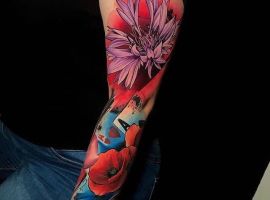 Кольорові татуювання – яскравий і креативний малюнок для сміливих хлопців і дівчат з творчим мисленням. Такий ескіз прикрасить тіло, передасть настрій, відобразить особливості характеру і темпераменту. Він може бути як великим, так і мініатюрним. Не потрібно стримувати фантазію. Досить вибрати бажаний стиль і визначитися з сюжетом і комбінацією відтінків.
