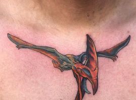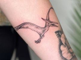 - Птеродактиль. Тату з літаючим динозавром виглядає неординарно.