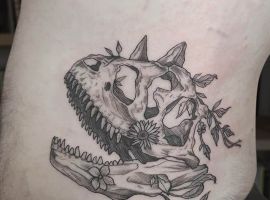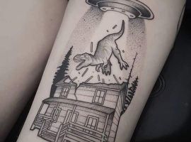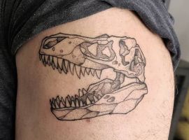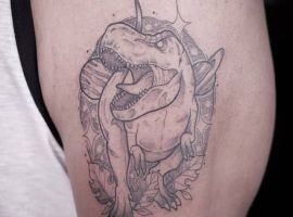 Татуювання динозавр виглядає незвично і заворожуюче. Ці великі істоти, які населяли колись нашу планету, до сих пір не забуті людством. Динозаври з’являються не тільки в фільмах, коміксах, комп’ютерних іграх і книгах. Міцно увійшли вони як символ і в світ художнього татуювання. Безумовно, майстри тату салону Альянс виконають для вас цю неординарну стилізовану тату.