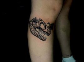 Місце нанесення залежить від форми і розмірів ескізу. Дуже добре виглядає татуювання з цим символом на плечі, передпліччя, боці, ребрах, спині, ікрі. Звичайно, наші майстри салону Альянс в Києві готові виконати для вас будь-яку стилізовану татуювання з динозавром. Подивіться приклади вже виконаних робіт в «Портфоліо» та звертайтеся!