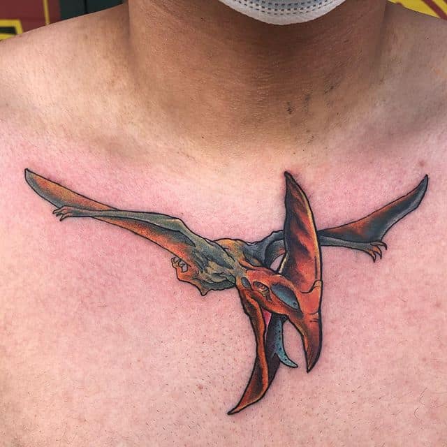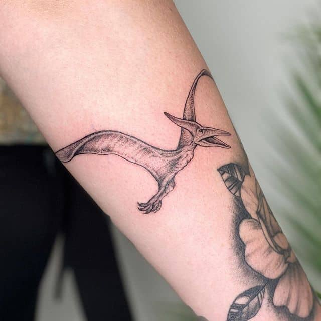 - Птеродактиль. Тату з літаючим динозавром виглядає неординарно.